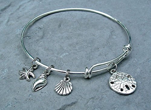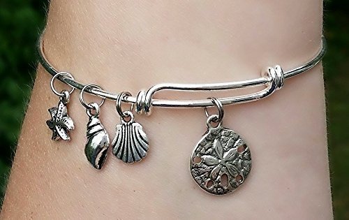 -. Title : Sea Shell Expandable Bangle Charm Bracelet - Beach Lover