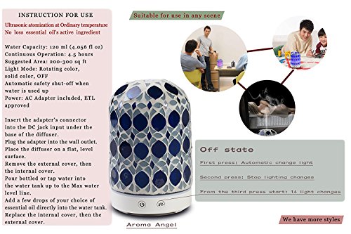 120ml Glass Housing Ultrasonic Diffuser fills with your favorite Essential Oil that can calm mood and relieve stress, prevent stubborn smoking and pet odors from spreading.