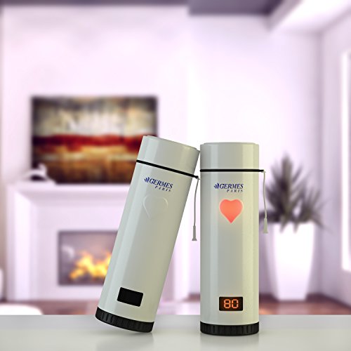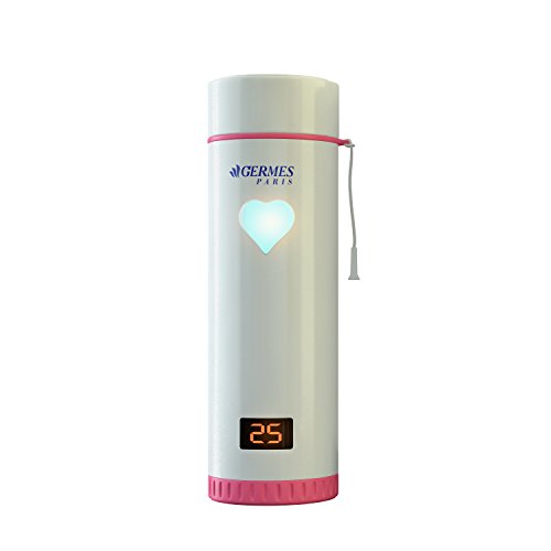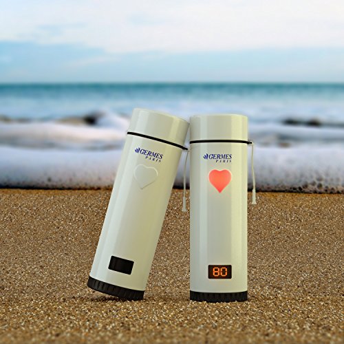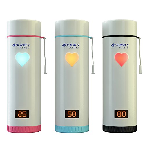 Magic Heart Drinking Cup By Germes Paris: Travel Coffee Mug With LED Display And Touch Sensitive Light For Temperature Indication, Elegant Design For Unique Gifts, Stainless Steel (pink)