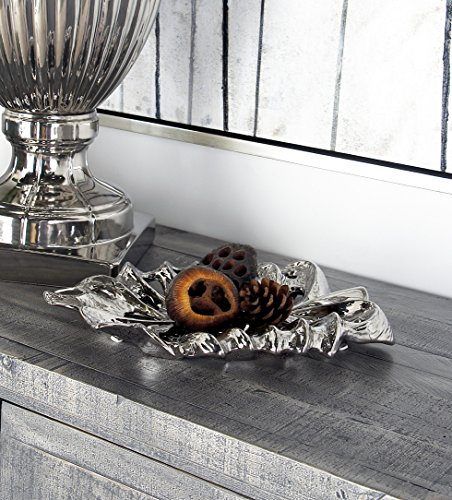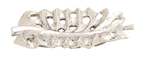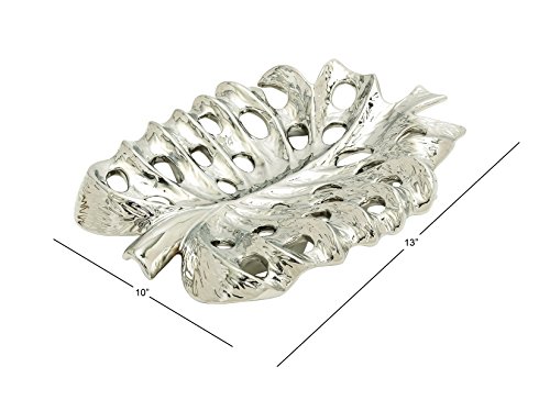 Deco 79 57535 Ceramic Silver Leaf Plate 13"W, 2"H -