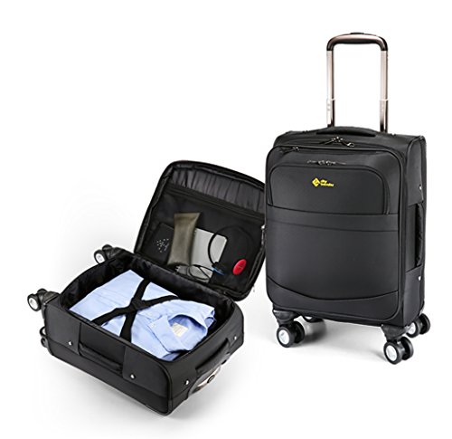 -. Feature : Tear-resistant - Made of durable nylon fabric / Easily Move Anywhere - Multi-directional spinner wheels that easily rotate 360-degree. Wheels are durable, quiet, and smooth. / Multi-organizational interior - Full-capacity design with specific compartments for holding documents, tablets, or other small objects / Safe, Sturdy and Reliable - High Quality Aluminum trolley handle for bearing weight, along with comfortable carrying handle / Perfect for Business trips - comes with an easy-to-use padlock