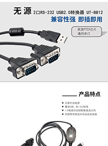 UTEK UT-8812 (2port) USB to 232 Converter(2-ports USB to RS-232 Serial Converter with ESD protection TX/RX LED and COM Retention FTDI Chip)