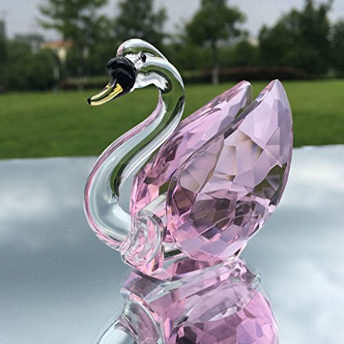 Pink Crystal Swan Figurine Paperweight,Glass Swan Collectible Statue Table Centerpiece Ornament