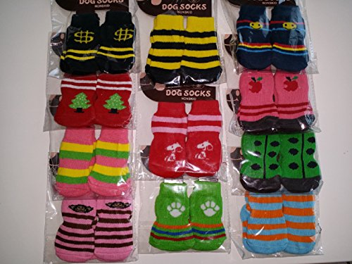 -. Feature : Cotton-indoor and outdoor socks for pets / Traction-non slippery / Keep your pet warm. / Great to give for Holidays. / Size: (L) 9*4.5 cm
