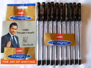 -. Title : 10 X Cello Fine Grip Non-stop Writing Ball Point Pen Black Ink Writing Ballpoint Pen # Brand Ad By Indian Cricketer Mahindera Singh Dhoni