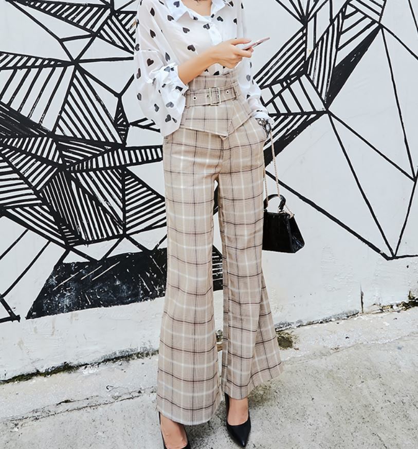 トレンドのチェック柄が可愛いロング丈ワイドパンツ☆