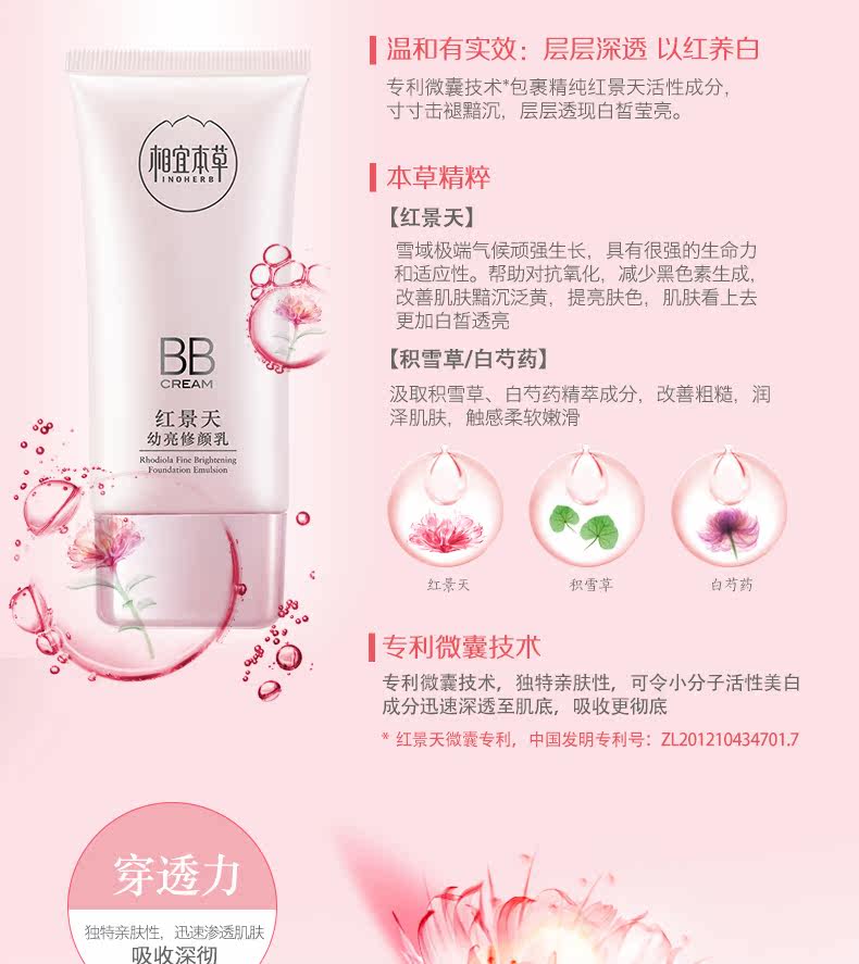 相宜本草红景天焕亮修颜乳BB霜滋润保湿隔离