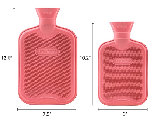 - This hot water bottle is manufactured to B.S.1970:2012 safety standards to ensure maximum safety. - Because it is made from natural rubber, some rubber smell is normal. Just put it in a ventilated environment for few days and the smell will disappear. - The classic design of this classic home remedy bottle makes it the perfect treatment for aching muscles. - The hot water bottle can keep warn about 6 hours if you use it in a blanket or quilt. If you use it outdoors, it will stay warm for 2 hours or less. CARE INSTRUCTIONS To ensure maximum life for the hot water bottle please follow these instructions: 1 - When filling the hot water bottle, DO NOT USE BOILING WATER. This may damage the rubber and could also burn your skin. 2 - Fill only to two-thirds capacity maximum. When filling, hold the bottle in an upright position and fill slowly to avoid the hot water from splashing back. 3 - Before use, allow up to 20 minutes for the bottle to reach its maximum temperature. 4 - Prevent contact with hot surfaces. IMPORTANT Not suitable for children under the age of 36 months. Handing should always be carried out by an adult. Check stopper for wear and tear damage at regular intervals. Bottles should be replaced after two years of use. Hot water bottle can cause burns - avoid prolonged direct contact to skin. Please click our storefront link next to the title on the top for more sizes, styles and combination options. 0 |