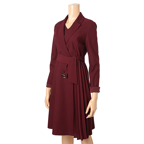 테일러드 카라 디자인으로 한층 포멀한 원피스입니다. 스커트 사이드에 플리츠 주름을 잡아 더욱 스타일리쉬하며 울 혼방 소재로 원단 자체의 광택감이 우수합니다. 후면 지퍼 구성되어 탈착의가 간편하고 스커트 밑단까지 안감 처리되었습니다.