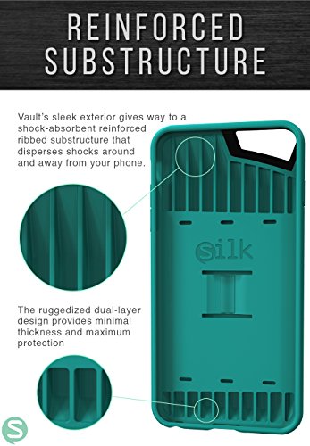 The Vault by Silk is an ultra slim wallet case for iPhone 6 Plus/6s Plus (5.5") that comfortably fits 3 cards plus cash. The durable soft-touch cover provides full-frame protection on all 4 corners to protect your phone from drops and dings. The soft-touch finish provides the perfect amount of grip and an ultra slim fit to slide in your pocket without sticking to the liner. Vault's sleek exterior gives way to a shock-absorbent reinforced ribbed substructure that disperses shocks around and away from your phone. Natural-Throw buttons provide a tactile response from each click to maintain an organic connection with the phone. Vault case marries the essentials of a wallet to the form factor of your iPhone.Feature