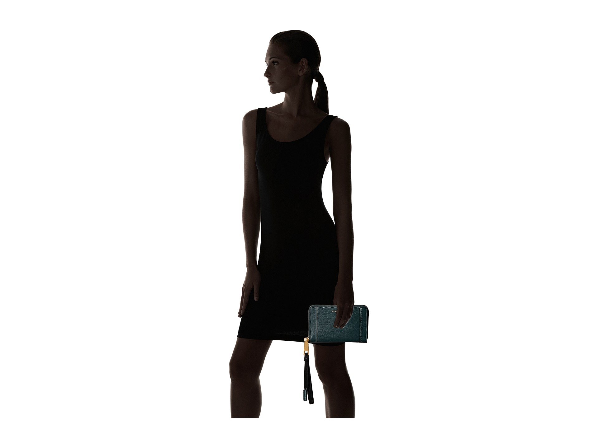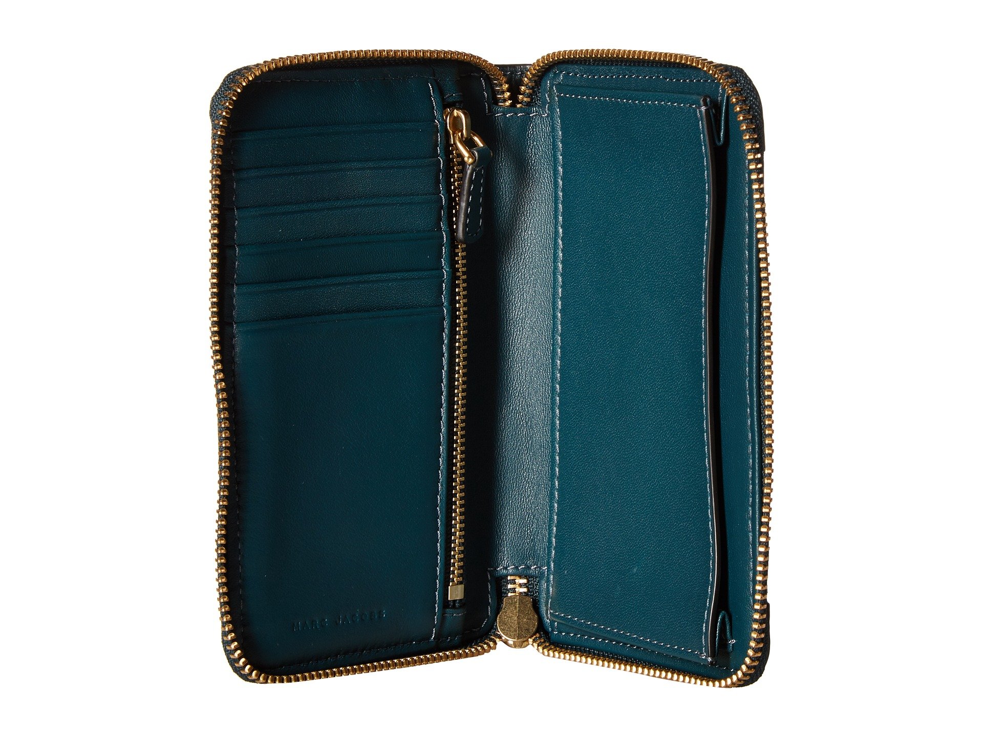 | Product Information SKU: #8755847Rebel in style when you carry the Marc Jacobs? Maverick Zip Phone Wristlet. Wristlet made of leather. Zip-around closure. Wristlet strap. Exterior contrast stitching accents. Brand name embossed at front. Leather lined interior features slip pockets, credit card slots and phone slot compatible for iPhone?. Imported. This item may ship with an attached security tag. Merchandise returned without the original security tag attached or a damaged tag may not qualify for a refund.This product may have a manufacturer's warranty. Please visit the manufacturer's website or contact us at warranty@support.zappos.com for full manufacturer warranty details.Measurements: Bottom Width: 6 in Depth: 1 in Height: 4 in Handle Length: 16 in Handle Drop: 7 in Weight: 5 oz |