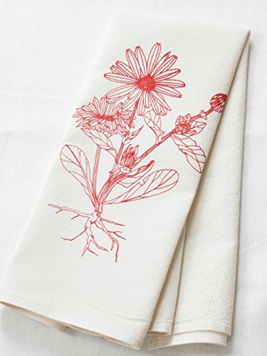 -. Title : Flower Tea Towel in Fiesta Red - Calendula Botanical P.R.Int - Flour Sack Towel - Natural Cotton Kitchen Towel - Cotton Dishcloth