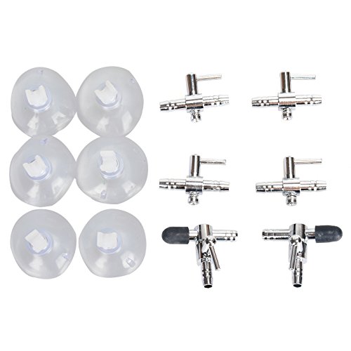 Pawfly 6 PCS One-Way Aquarium Air Flow Control Lever Valve Distributor Splitter Pump Accessories Set with 6 Suction Cups for Fish Tank