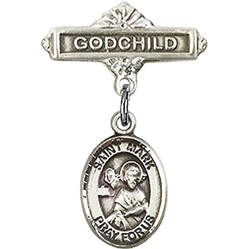 -. Title : Sterling Silver Baby Badge with St. Mark the Evangelist Charm and Godchild Badge Pin 1 X 5/8 inches