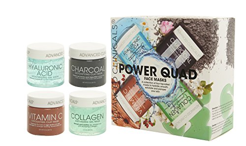 -. Title : Advanced Clinicals Power Quad Face Masks – Charcoal Mask, Vitamin C Mask, Collagen Mask, Hyaluronic Mask. 2oz each. Great gift set!