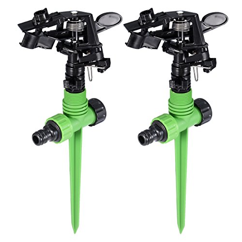 uxcell ABS Pulsating Impact Sprinkler on Step Spike, Adjustable 0-360 Degree Pattern, 2 Pack