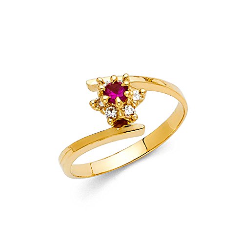 -. Title : Flower Cocktail Ring Solid 14k Yellow Gold Red CZ Band Curve Floral Fashion Style Polished Fancy