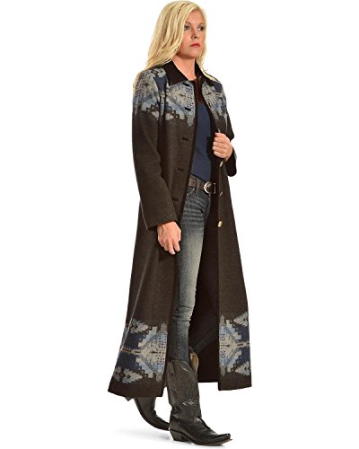 Seamed coat in an iconic Pendleton jacquard. Suede collar and trim. Metal Concho buttons. Imported of pure virgin wool fabric woven in Pendleton's American mills.