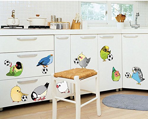 -. Title : 3D Self-adhesive Removable Cute Cartoon/Birds Play Football Vinyl Wall Sticker/Mural Art Decals Decorator for Kids Nursery Room