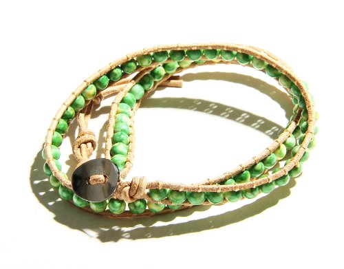 들키지《다》 컷 스톤 뜨개 랩 팔찌 천연석 소품 악세사리 맨즈 레이디스 F사이즈 그린