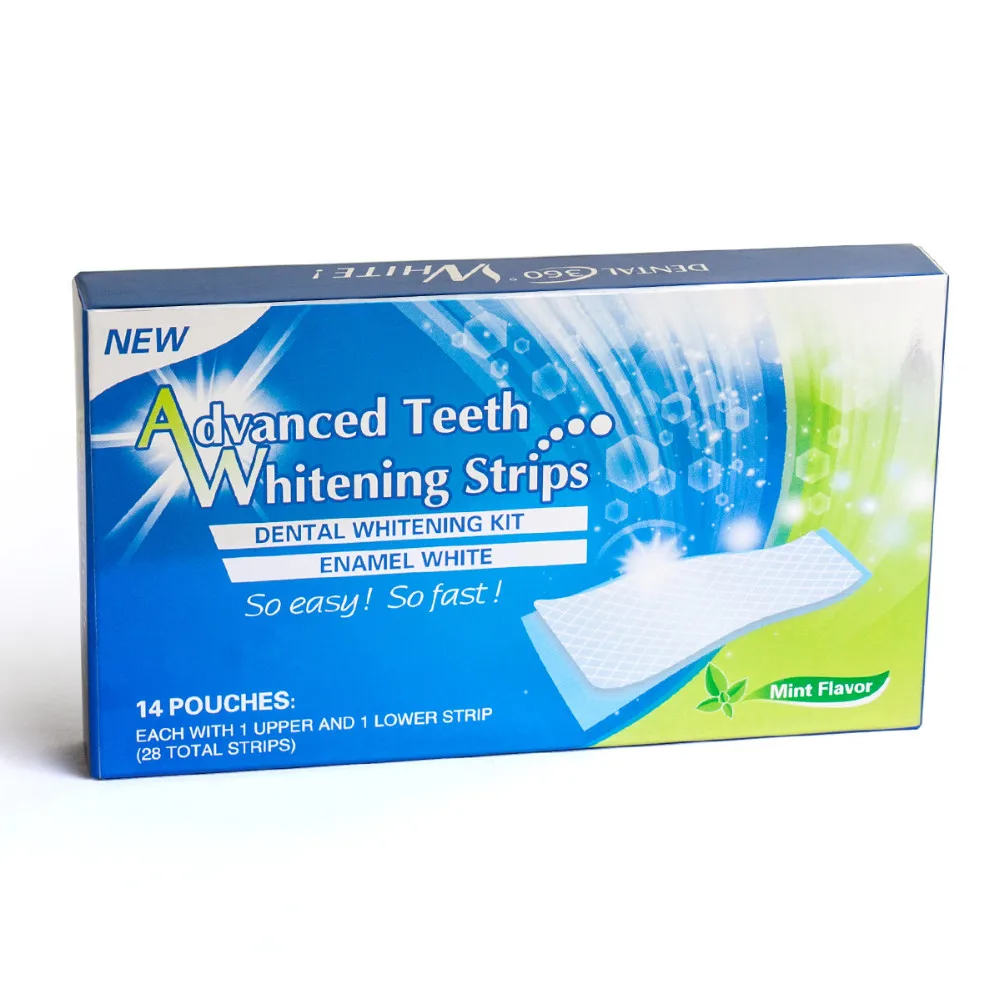 Tooth whitening strips lighten teeth and help to remove stains and discoloration.