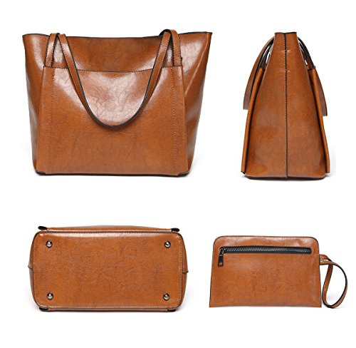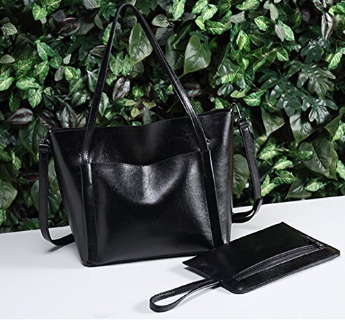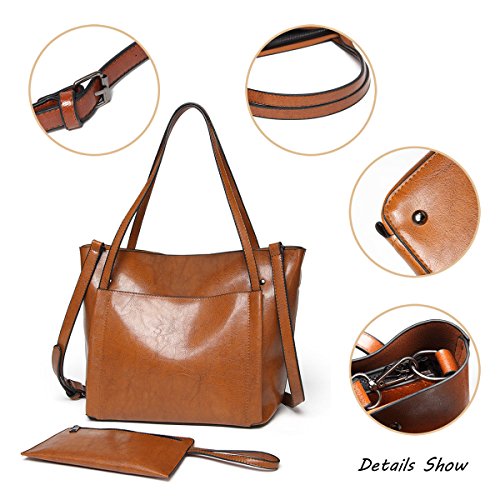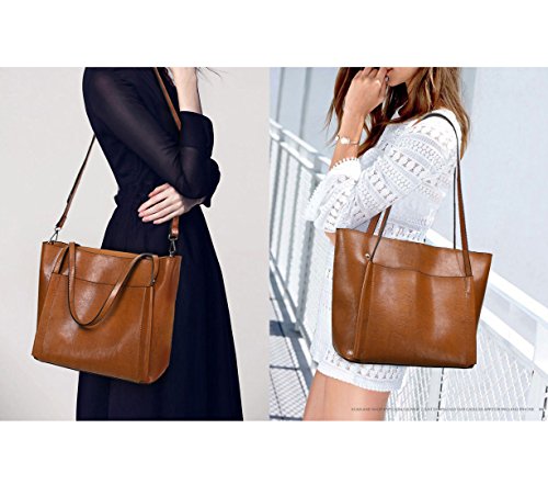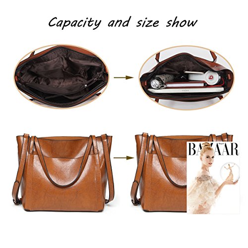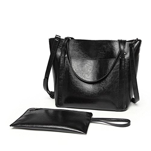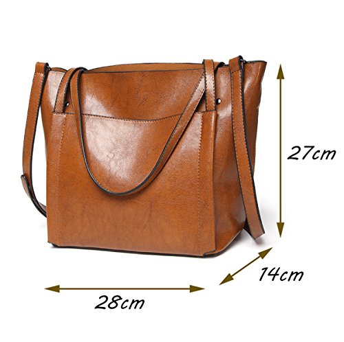 UGOOO Waterproof Oil Wax PU Women Bag Casual Vintage Shoulder Bag +Handbag 2pcs