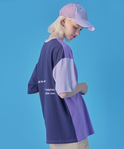 와이케이(WAIKEI) 핫썸머 컬러블록 반팔티셔츠_퍼플네이비