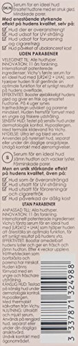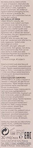 Vichy's first anti aging face serum to combat behavioral skin aging with results after just 8 days. Behavioral molecule association, LR2412 + LHA. Inspired by the skin's natural rejuvenation process, LR2412 accelerates skin's repair and boosts its resistance to external aggressors. Micro-exfoliating LHA helps to stimulate renewal and reduce the appearance of surface pigmentation. Paraben free. Lightweight, hydrating texture melts easily into skin. Golden and pink micro-pearls instantly illuminate skin. Allergy-tested. Formulated for sensitive skin. Tested under dermatological control. Based on a clinical study on a group of extremists - smokers, urban dwellers, high-stress individuals, and those with poor diets: 83.9% agreed that skin felt softer, 82.2% agreed that skin texture felt smoother, 83.9% agreed that skin felt softer, 80.4% agreed overall skin quality was improved, 1 out of 2 women felt comfortable going out with less makeup or no makeup at all. Ingredients: QUA/WATER • GLYCERIN • CYCLOHEXASILOXANE • ISOPROPYL ISOSTEARATE • OCTYLDODECANOL • DICAPRYLYL ETHER • SODIUM TETRAHYDROJASMONATE • DIMETHICONE • DIPROPYLENE GLYCOL • POLYMETHYL METHACRYLATE • CI 17200 • CI 15985 • CI 77891 • MICA • CARBOMER • SODIUM HYALURONATE • SODIUM HYDROXIDE • SILICA • PHENOXYETHANOL • ADENOSINE • POLOXAMER 338 • AMMONIUM POLYACRYLDIMETHYLTAURAMIDE • DISODIUM EDTA • CAPRYLOYL SALICYLIC ACID • POLYSILICONE-11 • PARFUMFeature