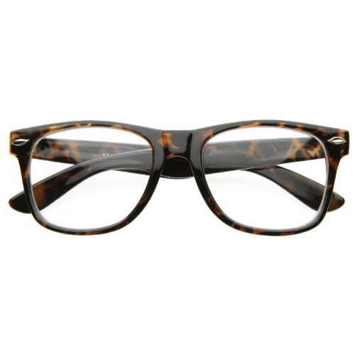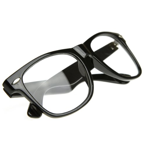 Product Description Classic horn rimmed frame that still offers an iconic style with clear lenses for a very sophisticated look. Definitely one of the most recognizable frames in eye wear. Made with acetate based frame, metal hinges, and clear polycarbonate UV protected lenses. 0
