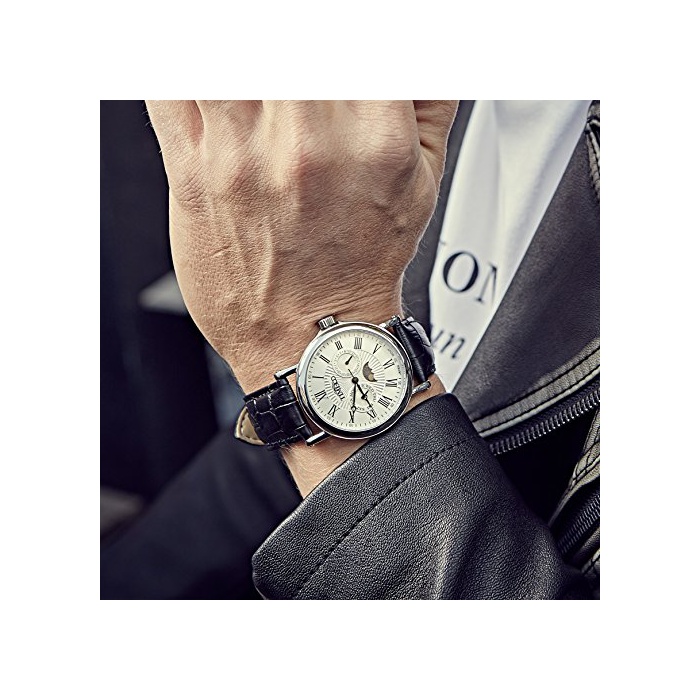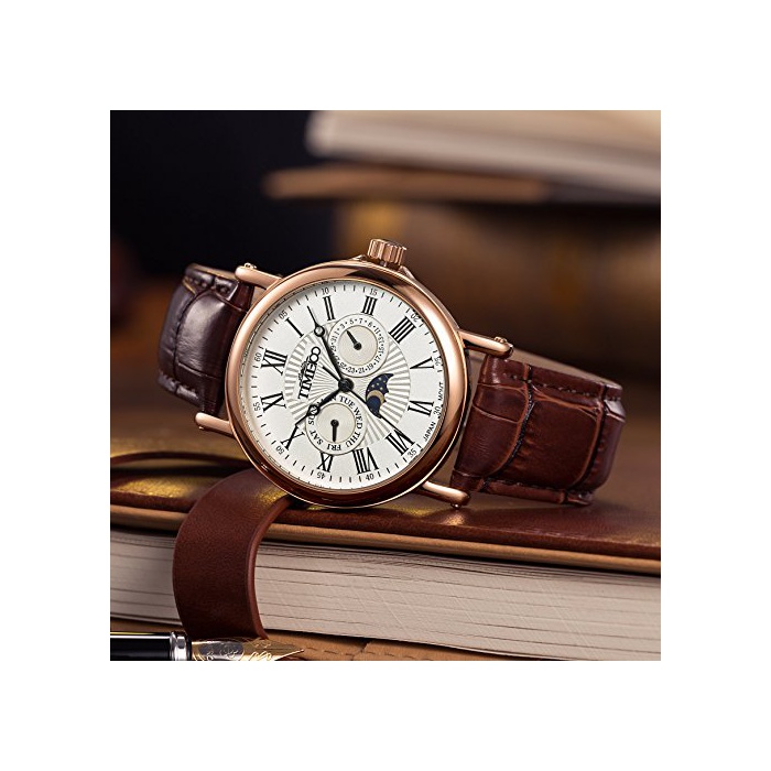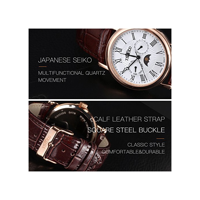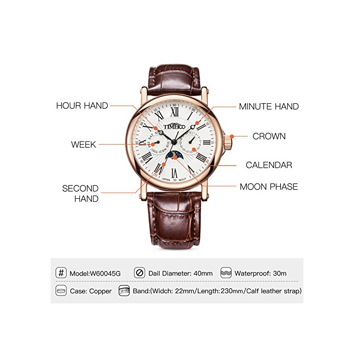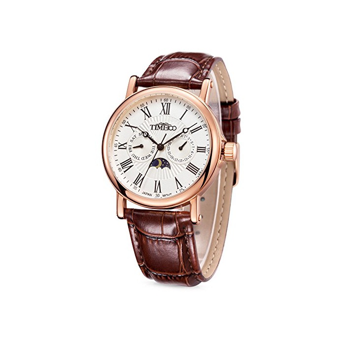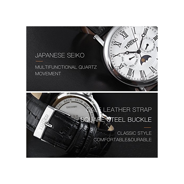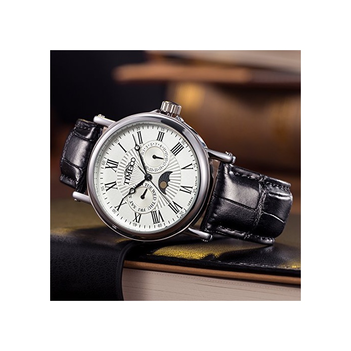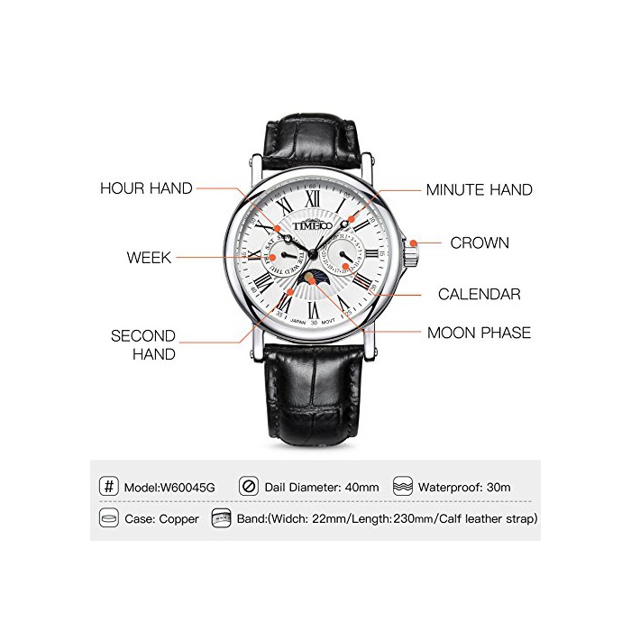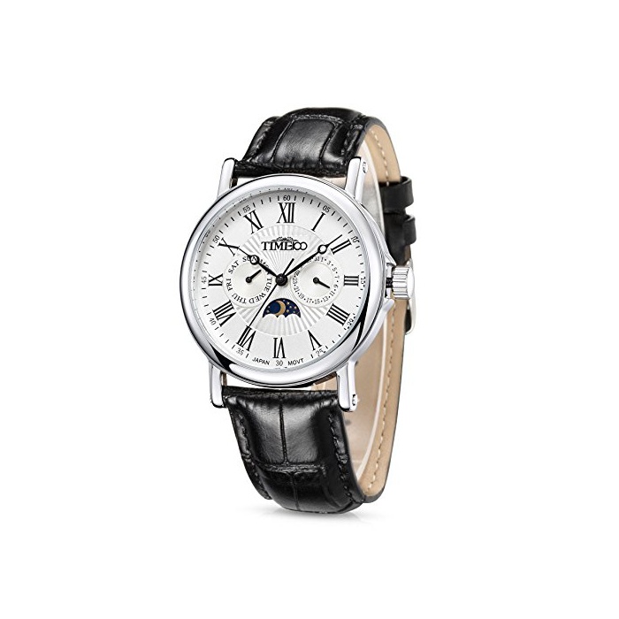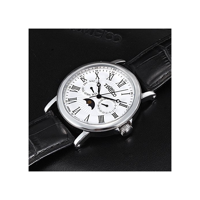 Time100 다기능 남성 손목시계 로마숫자 날짜 요일 표시 주야 표시 Japan Movt W80035G (화이트)