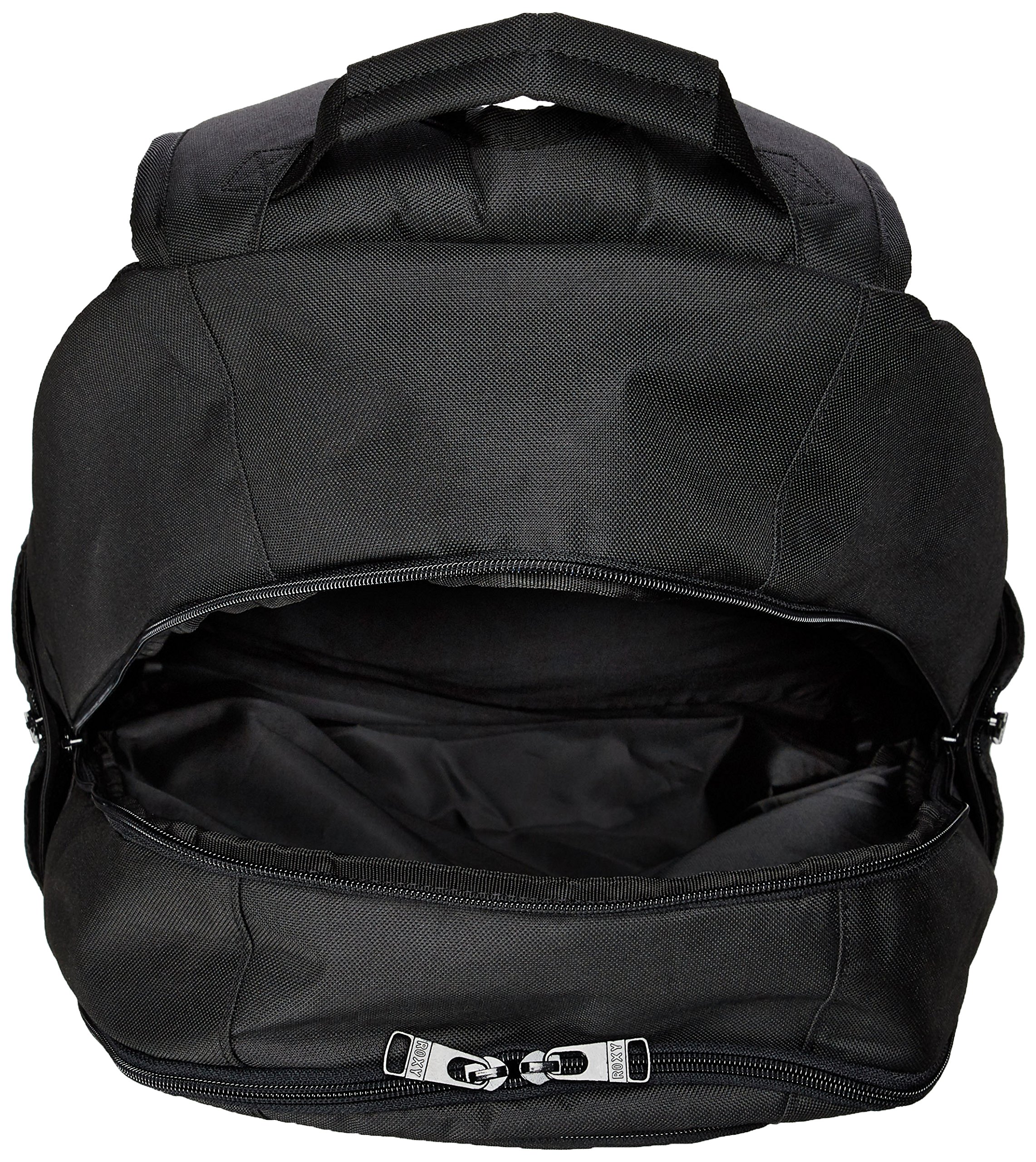 The brand logo of 3D embroidery applied to the out pocket is an accent backpack.