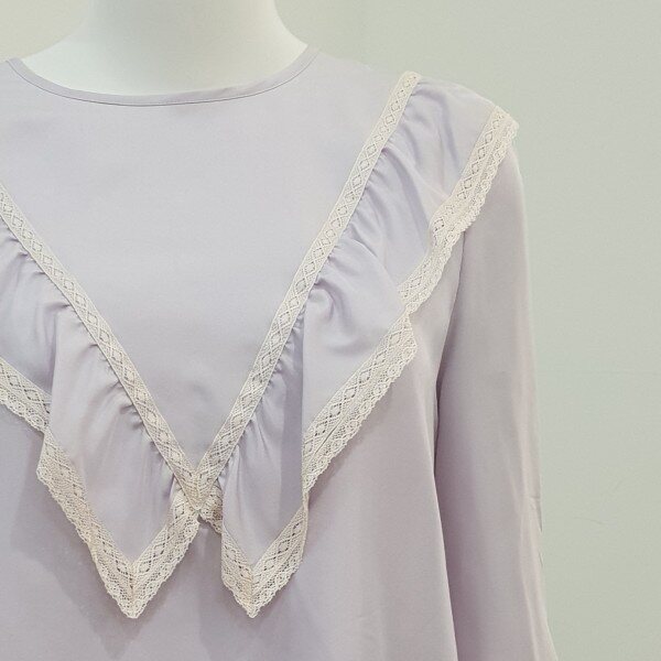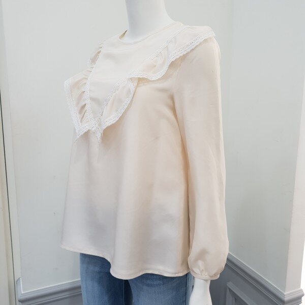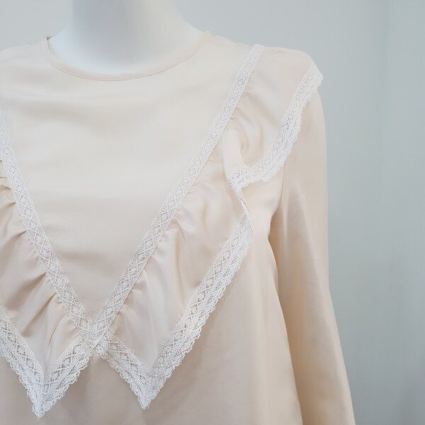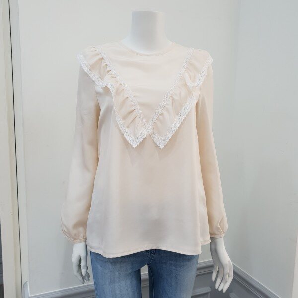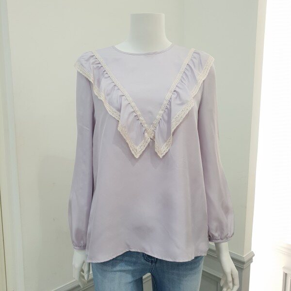 중앙 빅 레이스프릴장식 포인트 소녀스러운무드의 실키블라우스♡