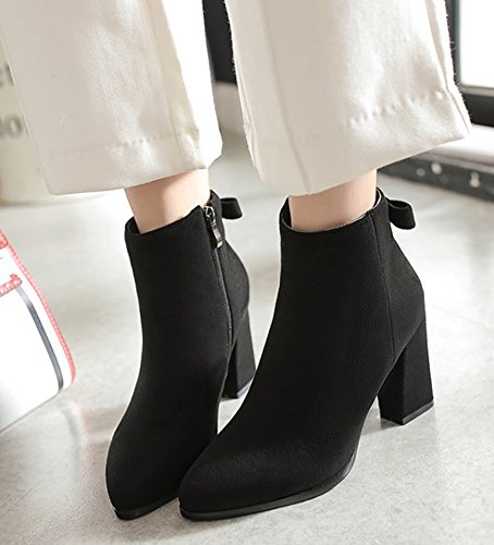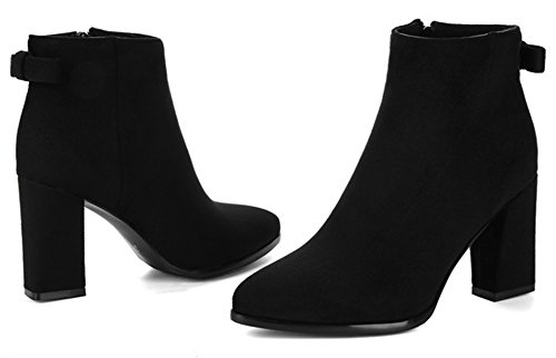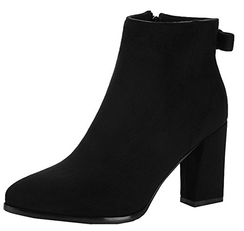 Binding : Apparel Product Description This pair of shoes is for women, girls, young ladies and office workers. You will look casual and trendy when walking with them. The heels measure 3.3 inches. You will look slimmer and slender in their high mid heels. This pair of shoes features solid upper and ankle high. You will look cute in their round toe and bowknot design. It's convenient for you to wear in their zipper closure. The sole is made of good rubber. You will feel comfortable in their soft bottom. They are available in gun, black and silver. You could match them with many kinds of clothes. They are of high quality and durable. Come on and take them away! 0