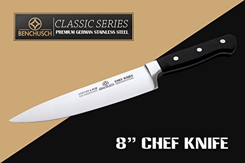 -. Title : Benchusch Balanced 8" Chef Knife - Crafted with professional German stainless steel - 8" full tang blade - Lightweight and extremely sturdy for speed and precision