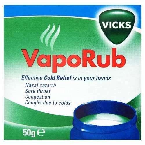 Vicks VapoRub provides relief from nasal catarrh, sore throats, congestion and coughs due to colds. Occasionally Vicks VapoRub can cause a temporay reddening of the skin in the region where the product has been rubbed in. This skin reddening fades and disappears within hours without any further action from yourself. If the reddening does not disappear or if you notice anything else unusual or have any unexpected effects please talk to your doctor or pharmacist 0