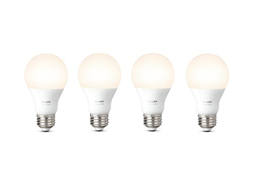 Studio : Philips Publisher : Philips Binding : Tools Home Improvement Product Description Automate your lighting experience with Philips Hue and control your lights from home or away. Create light schedules from the Philips Hue App and never come home to a dark house. Requiring the Hue Bridge (sold separately) for the full Hue experience, these bulbs fit standard-size table lamps. Install the LED lights as you would install ordinary bulbs and pair them with the Hue Bridge, which allows you to control smart-bulb-equipped lamps and overhead lights via the Philips Hue App. Easily expand your lighting system with accessories (sold separately), such as a Hue Dimmer Switch, Hue Tap, or Hue Motion Sensor. Pair it for automation with your existing Nest or SmartThings system. This box includes four Philips Hue White A19 Energy Star Certified Standard light bulbs, manual, and two-year warranty. 0
