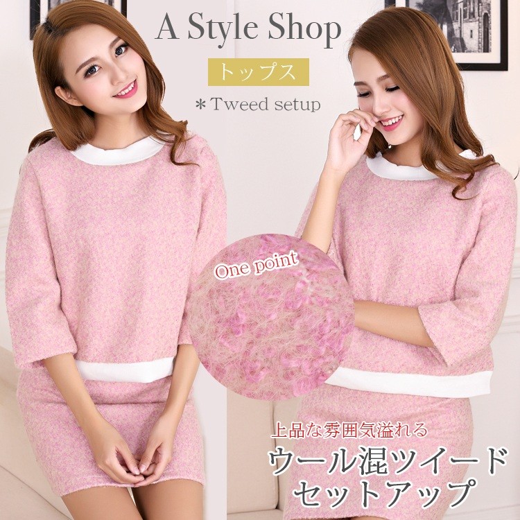 『50%売り尽くし×メール便送料無料』レディース ウール混ツイードセットアップ セットアップ/レディース セットアップ ニット スカート 長そで 長そでモード ニットアップ『セール品のため返品交換不可』