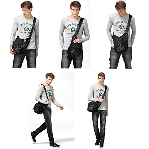 -. Feature : EVERLASTING MATERIAL-The messenger bag is made of thick stain fabric,which make the durable and water resistant. / HAVING SMART DESIGN-A striking pattern on the front side,which make you look cool when you wear the messenger bag ;you can access the vacuum cup or umbrella in the reticulation slot on the both side,an earphone slot connected the bag,you can listen to music when using the messenger bag,your key also can be clasped in the messenger bag . / PROVIDING ROOMY STORAGE FOY YOUR DAILY MUST HAVE-The messenger bag comfortably hold your iPad,wallet,smart phone ,pens,planner,and some your daily necessary. And the rear zipper compartment can secure your belongings. / SATISFYING DIMENSION AND WEARING FOR YOUR PREFERENCE-33 x 14 x 36 cm/ 13 x 5.5 x 14.5 inch.With adjustable strap,you can wear it as shoulder bag or cross body bag . / PERFECT ACCOMPANY-The messenger bag is suitable for daily, working,traveling,riding,hiking,cycling,outdoor living,school,etc.The messenger bag is perfect for yourself,families,friend.