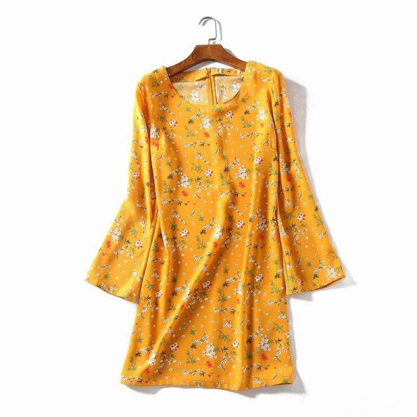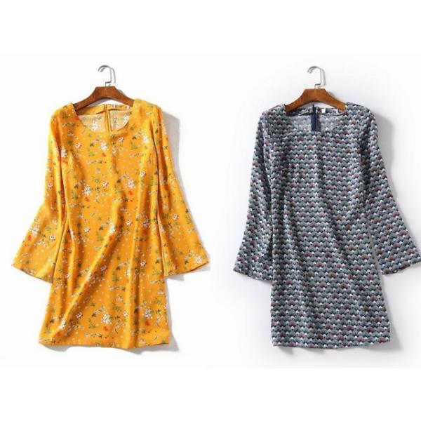 プリント柄が入った、長袖ワンピースです♪