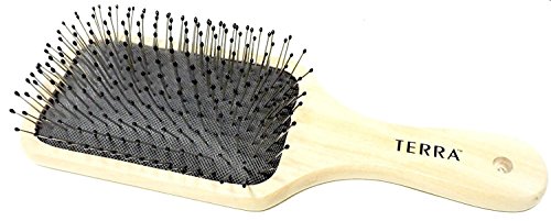 Terra Natural Wood Professionall Hairbrush All Hair Type Vinyl Tip Stainless Steel Bristles Spa Massage