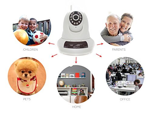 -. Feature : • USEFUL AT HOME OR OFFICE: Great for use as a home security camera, office security camera, pet monitor, nanny cam, vacation home monitor, senior elder monitor, baby monitor. / • POWERFUL FUNCTIONS: Remote live streaming video via smartphone, tablet or computer. Supports iphone/android viewing via app. Also features remote pan and tilt, night vision, motion detection, two-way voice built in mic and speaker. Can record directly to the Cloud or to an MicroSD Card. / • EASY SETUP: Simple QR Code scan for fast plug and play setup in minutes. Easy to connect to Wi-Fi or Ethernet. / • PREMIUM MATERIALS: Crafted from premium durable rubber and plastic material. Powerful antenna for reliable Wi-Fi connection, high quality 3.6mm lens, H.264 video compression format for maximum clarity. / • CRYSTAL CLEAR VIDEO: Stunning 720p HD Video Quality with 350 degree horizontal swivel and 100 degree vertical tilt. 12 IR LEDs for night vision. Digital zoom.