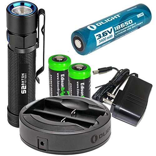Olight S2 Baton 950 Lumen CREE XM-L2 U3 LED Flashlight, Olight Omni-DOK Universal Battery Charger, Olight 18650 3400mAh Li-ion rechargeable battery with two EdisonBright CR123A Lithium Batteries