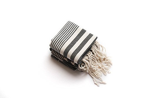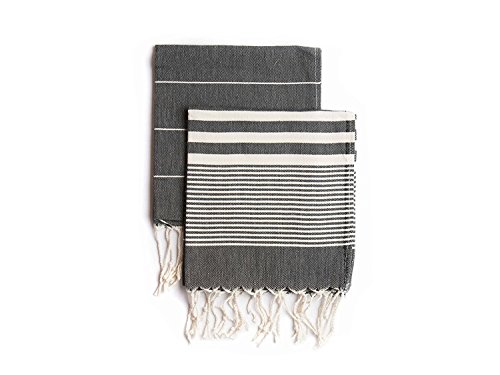 Set of 2, Eco-friendly Turkish Tea Towel, Dishclothes, Peshkir, Dish Towel, Kitchen Towel, Hand Towel (Black), Size: 18″ x 40″