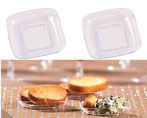 Mini Dessert Plates 2.5"x2.5" - ((50 pc BULK pack )) Sturdy Square Clear Appetizer Plates