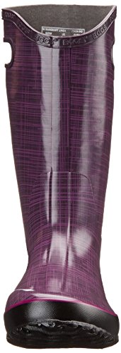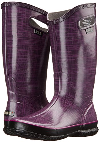 Puddle-jump in style wearing the Bogs Linen Rainboot. Decorated in a graphic, linen-look print and constructed with lightweight, insulating warmth, this pull-on women's boot features a natural rubber upper designed to keep your feet dry in sprinkles and torrential downpours alike. Side handles aid in the on/off process; Aegis� antimicrobial treatment controls odor. The Bogs Linen Rainboot has a non-slip rubber outsole to keep you on your toes as you move through your day, even over slick, wet surfaces.Feature