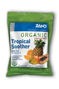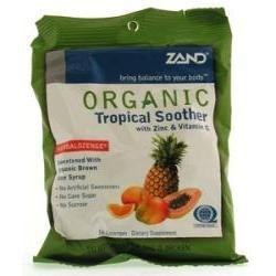 OrganicTropical SootherHerbal Lozenges include 2mg of Zinc and 100% of the daily value of Vitamin C to coat and soothe your throat. The perfect blend of tropical fruit flavors provides a great tasting organic lozenge.