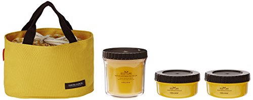 LOCK & LOCK 3 Unit Mini Circular Containers & Lunch Bag, Yellow