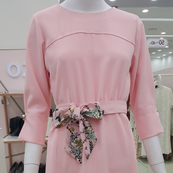 7부소매~예쁜 진주장식 소매단추~~~허리부분을 잘게 개더 처리해서밸트 없이도 예쁘구요~~~스카프 밸트로 더 여성스럽게 연출해 보셔요~~