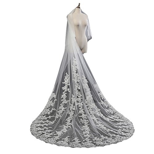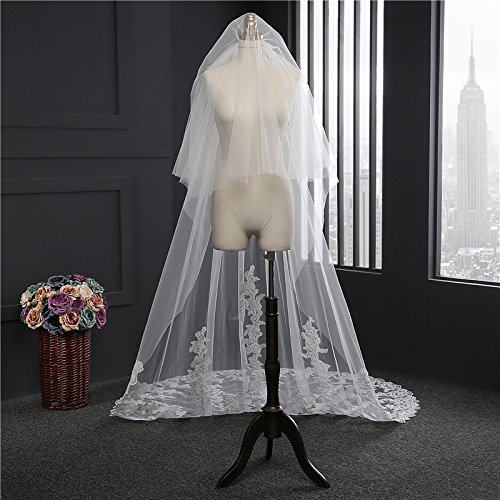 (Vweil)/Accessories/Scarves/DIRECT FROM USA/Vweil 2 Tier Applique Lace Bridal Wedding Veils With Comb Mantilla Cathedral Length Veil 3 Meters