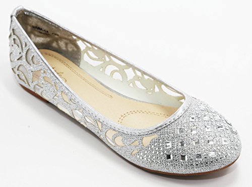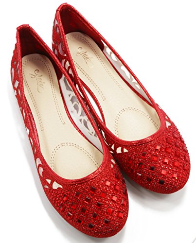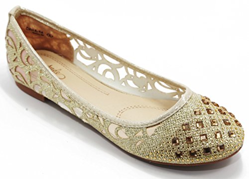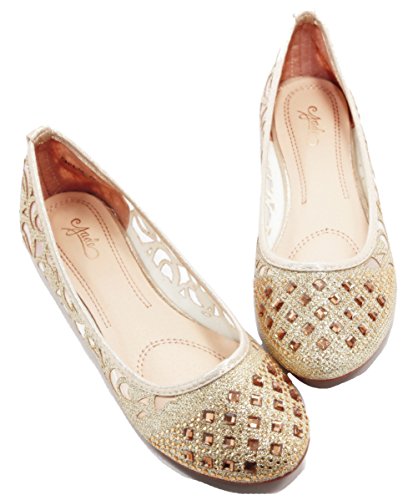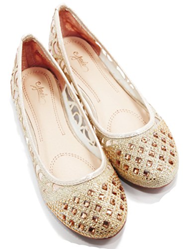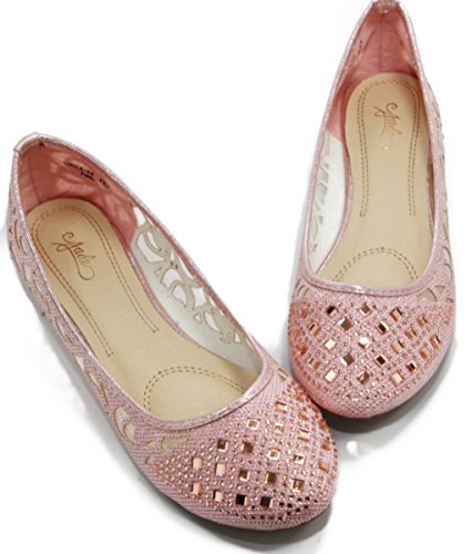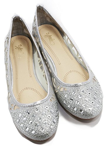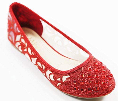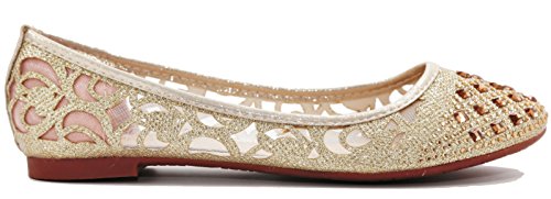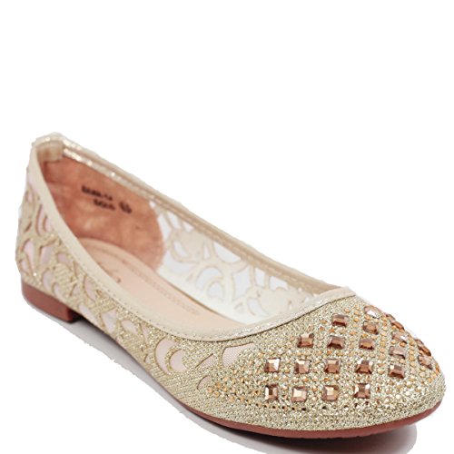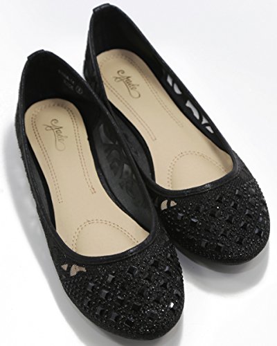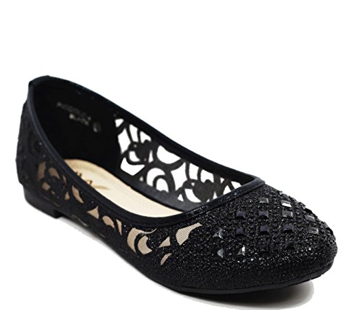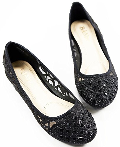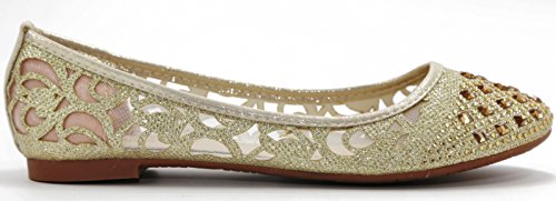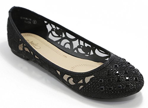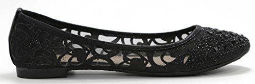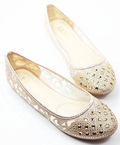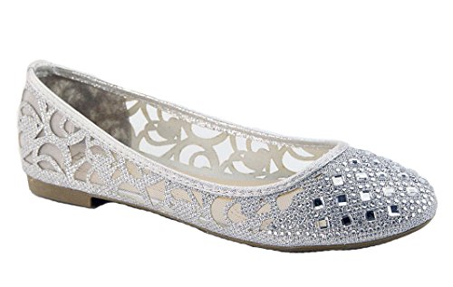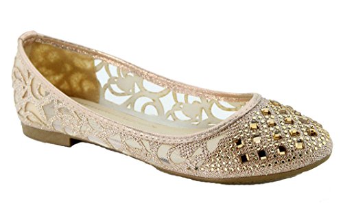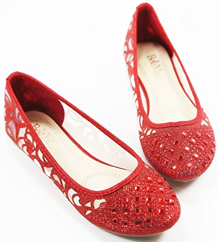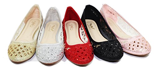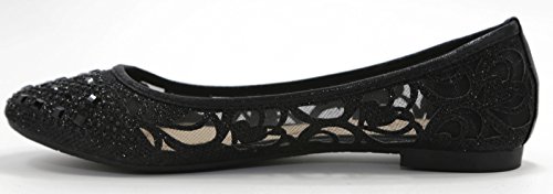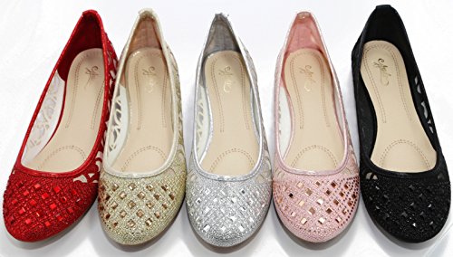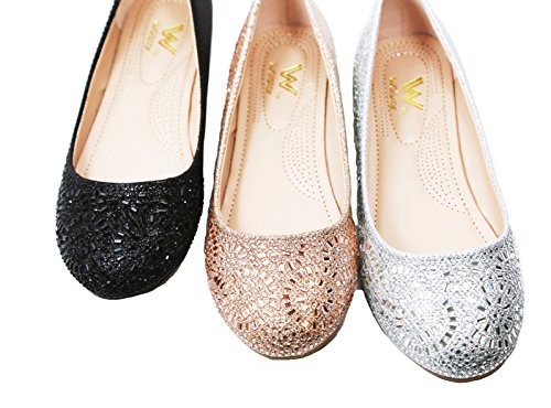 | Walstar Women Casual Rhinestone Glitter Mesh Slip On Ballet Flat Lightweigh |